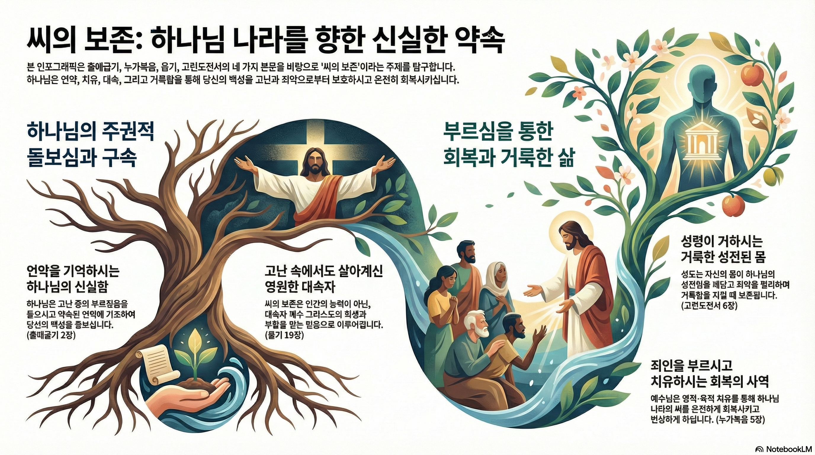 씨의 보존은 회복을 통해 완성됩니다. 죄로 인해 죽어가는 우리를 부르시고, 씻기시며, 다시금 거룩한 씨앗으로 살아가게 하시는 것이 주님의 보존 방식입니다. 주님의 부르심 앞에 겸손히 나아갈 때, 우리는 온전한 생명력을 회복하게 됩니다.